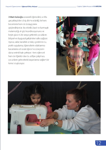 Anasınıfı Öğrencilerinin Eğlenceli Dikiş Atölyesi Çağdaş Eğitim Kooperatifi E-BÜLTEN