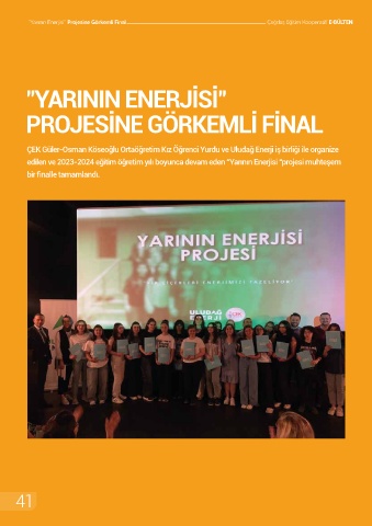 ‘’Yarının Enerjisi’’ Projesine Görkemli Final Çağdaş Eğitim Kooperatifi E-BÜLTEN