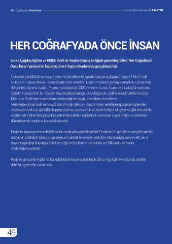 Bursa Çağdaş Eğitim ve Kültür Vakfı ile Yeşim Grup iş birliğiyle gerçekleştirilen "Her Coğrafyada
