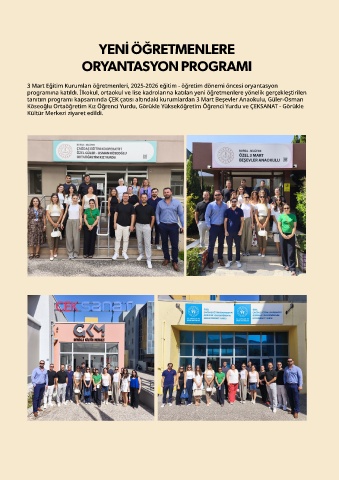 3 Mart Eğitim Kurumları öğretmenleri, 2025-2026 eğitim - öğretim dönemi öncesi oryantasyon