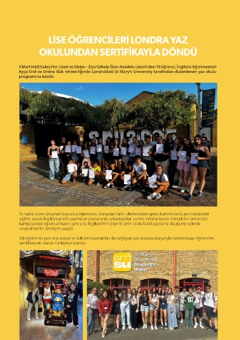 Ayça Erol ve Emine Bük rehberliğinde Londra’daki St Mary’s University tarafından düzenlenen yaz okulu