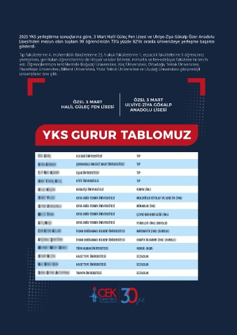 2025 YKS yerleştirme sonuçlarına göre, 3 Mart Halil Güleç Fen Lisesi ve Ulviye-Ziya Gökalp Özer Anadolu