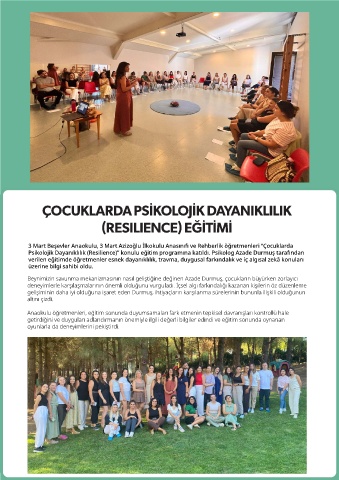 Psikolojik Dayanıklılık (Resilience)” konulu eğitim programına katıldı. Psikolog Azade Durmuş tarafından