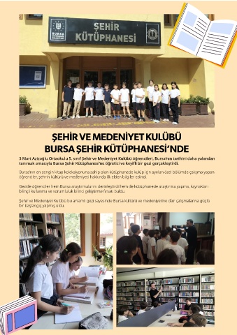 tanımak amacıyla Bursa Şehir Kütüphanesi’ne öğretici ve keyifli bir gezi gerçekleştirdi.