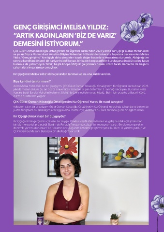 Adım Melisa Yıldız. Eski bir Kır Çiçeğiyim. ÇEK Güler Osman Köseoğlu Ortaöğretim Kız Öğrenci Yurdu’ndan 2023
