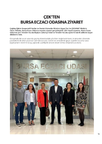 Hacer Akbaba, Bursa Eczacı Odasına nezaket ziyareti gerçekleştirdi. ÇEK Heyeti ziyarette, Bursa Eczacı