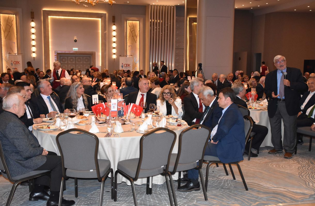"Geçmişten Geleceğe, Umudu Yeşerten 30 Yıl" başlığı ile organize edilen Çağdaş Eğitim Kooperatifi 30. kuruluş yıl dönümü etkinliği, geniş bir katılımla 31 Ekim akşamı Almira Hotel'de gerçekleştirildi. Aynı zamanda Cumhuriyetimizin 102. yılını kutladığımız hafta gerçekleşmesinden dolayı coşkusu daha da artan geceye, ÇEK Yönetim-Denetim Kurulu üyeleri, Danışma Kurulu üyeleri, geçmiş dönem başkanları, Bursa milletvekilleri Kayıhan Pala ve Hasan Öztürk, Nilüfer Belediyesi Başkanı Şadi Özdemir, Osmangazi Belediye Başkanı Erkan Aydın, Harmancık Belediye Başkanı Haşim Ali Arıkan, Yıldırım Belediyesi Başkan Vekili Mert Tiryaki, Uludağ Üniversitesi eski Rektörü Prof. Dr. Mustafa Yurtkuran, Milli Eğitim eski Bakanı Turhan Tayan, Bursa iş dünyasının tanınmış isimleri, STK temsilcileri, meslek odalarının yöneticileri ve Bursa basın kuruluşlarının temsilcilerinin yanı sıra, ÇEK 3 Mart Eğitim Kurumları Müdürleri, ÇEK bağışçıları ve gönüllüler katıldı.