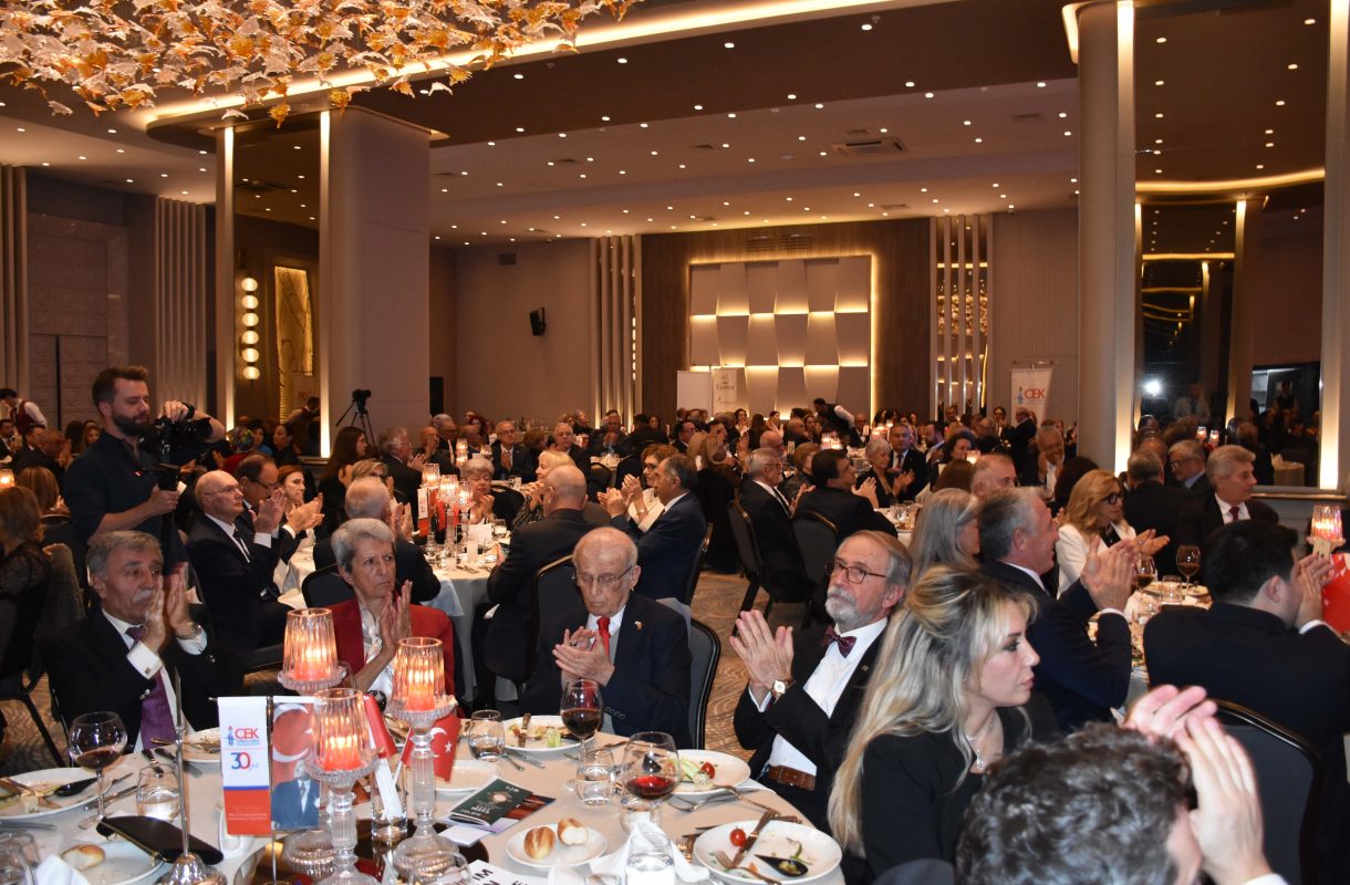 "Geçmişten Geleceğe, Umudu Yeşerten 30 Yıl" başlığı ile organize edilen Çağdaş Eğitim Kooperatifi 30. kuruluş yıl dönümü etkinliği, geniş bir katılımla 31 Ekim akşamı Almira Hotel'de gerçekleştirildi. Aynı zamanda Cumhuriyetimizin 102. yılını kutladığımız hafta gerçekleşmesinden dolayı coşkusu daha da artan geceye, ÇEK Yönetim-Denetim Kurulu üyeleri, Danışma Kurulu üyeleri, geçmiş dönem başkanları, Bursa milletvekilleri Kayıhan Pala ve Hasan Öztürk, Nilüfer Belediyesi Başkanı Şadi Özdemir, Osmangazi Belediye Başkanı Erkan Aydın, Harmancık Belediye Başkanı Haşim Ali Arıkan, Yıldırım Belediyesi Başkan Vekili Mert Tiryaki, Uludağ Üniversitesi eski Rektörü Prof. Dr. Mustafa Yurtkuran, Milli Eğitim eski Bakanı Turhan Tayan, Bursa iş dünyasının tanınmış isimleri, STK temsilcileri, meslek odalarının yöneticileri ve Bursa basın kuruluşlarının temsilcilerinin yanı sıra, ÇEK 3 Mart Eğitim Kurumları Müdürleri, ÇEK bağışçıları ve gönüllüler katıldı.